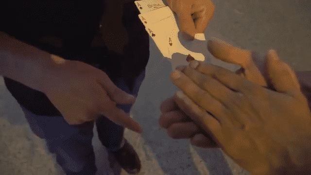 ●2枚のジョーカーが彼らの手に触れた瞬間、手の中の4枚のエースが2枚のジョーカーに瞬く間に変わっています!