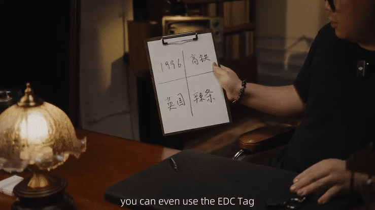 マイクロファイバーレザー製EDCタグは、手縫いの精密さによる洗練されたミニマル美学を特徴とします。
