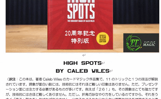 ハイスポット(15周年記念版)カードマジック作品集:日本語詳細解説書付き