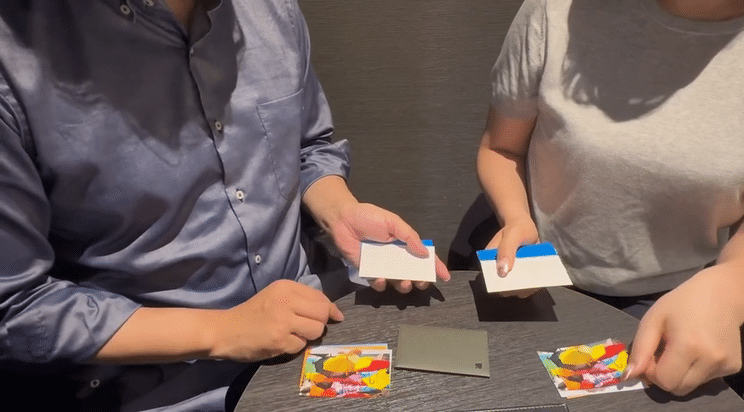 では、こちらの写真の束を扇状に広げます。お好きなところで“ストップ”と言ってください。