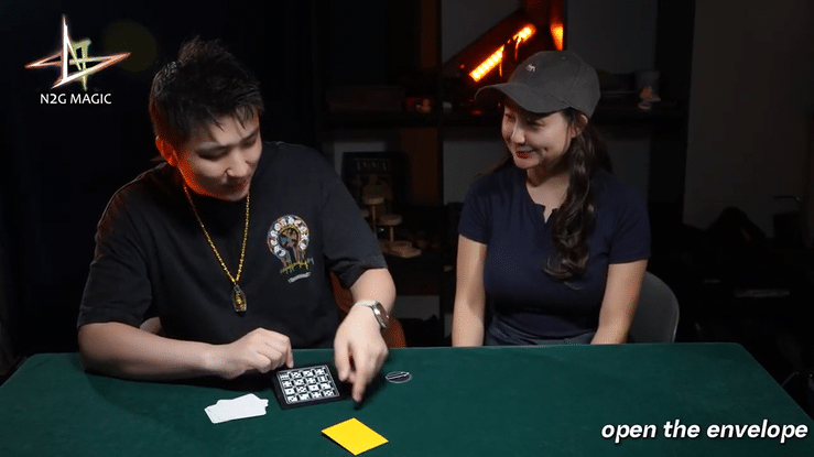 マジシャンはまず封筒を取り出し、予言だと説明して観客の一人に預けます。