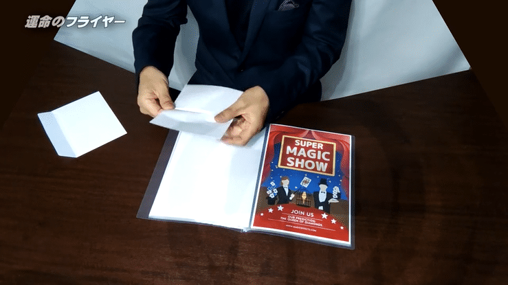 演者は「予言の封筒」を取り出したあと、観客に、任意のページを開いてもらいます。